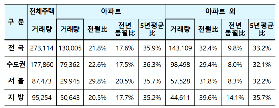 - 지방은 34,878호로 전년 동기 대비 21.0% 감소