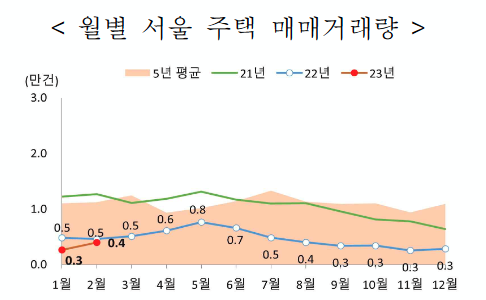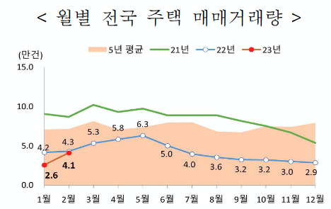 ‘23.2월 주택 매매거래량(신고일 기준)은 총 41,191건으로 집계