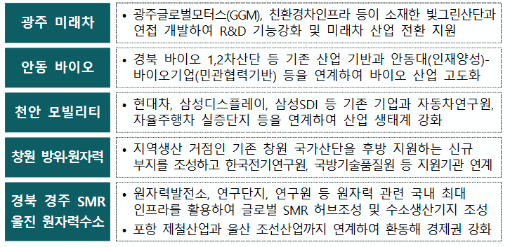 - (선정경위) 지역이 비교우위 분야 선정하여 제안하거나 또는 기업 제안에 대해 국가 전략적 추진 필요성 고려하여 선정